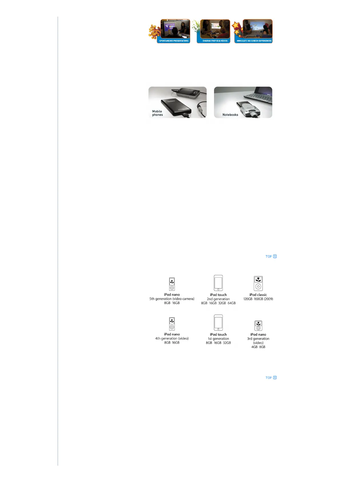 iPods, laptop computers, digital cameras with TV-out, mobile phones