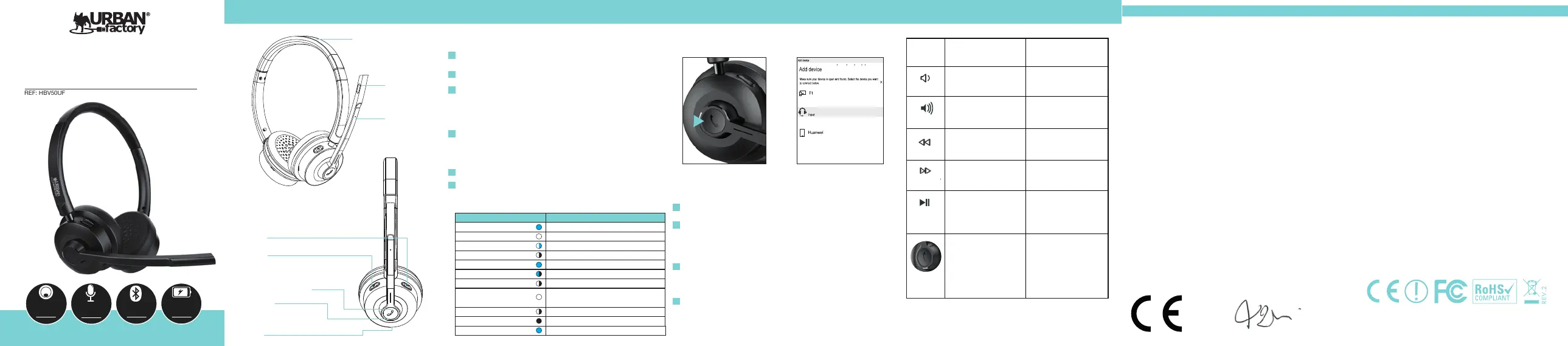 Par la présente, URBAN FACTORY  déclare que le casque HBV50UF est