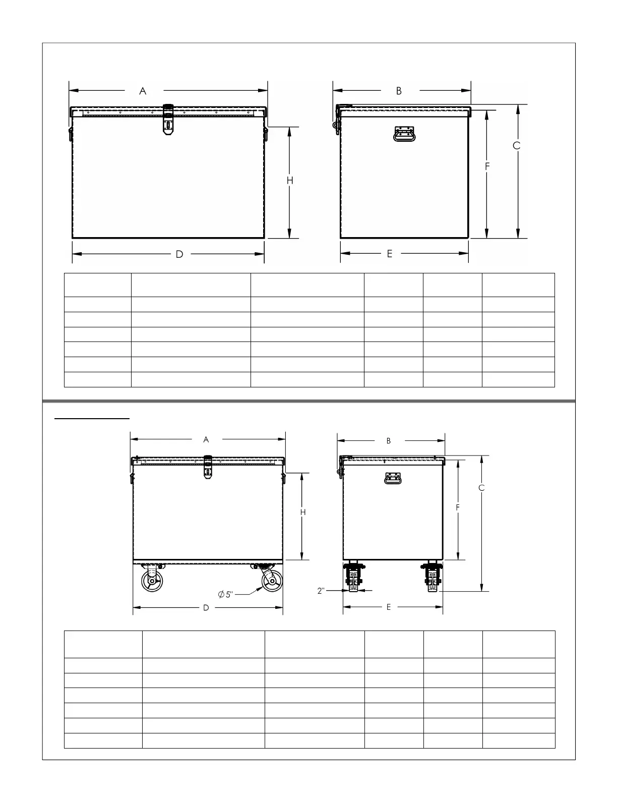 The following diagrams and tables provide dimensions and weights of each tool box.