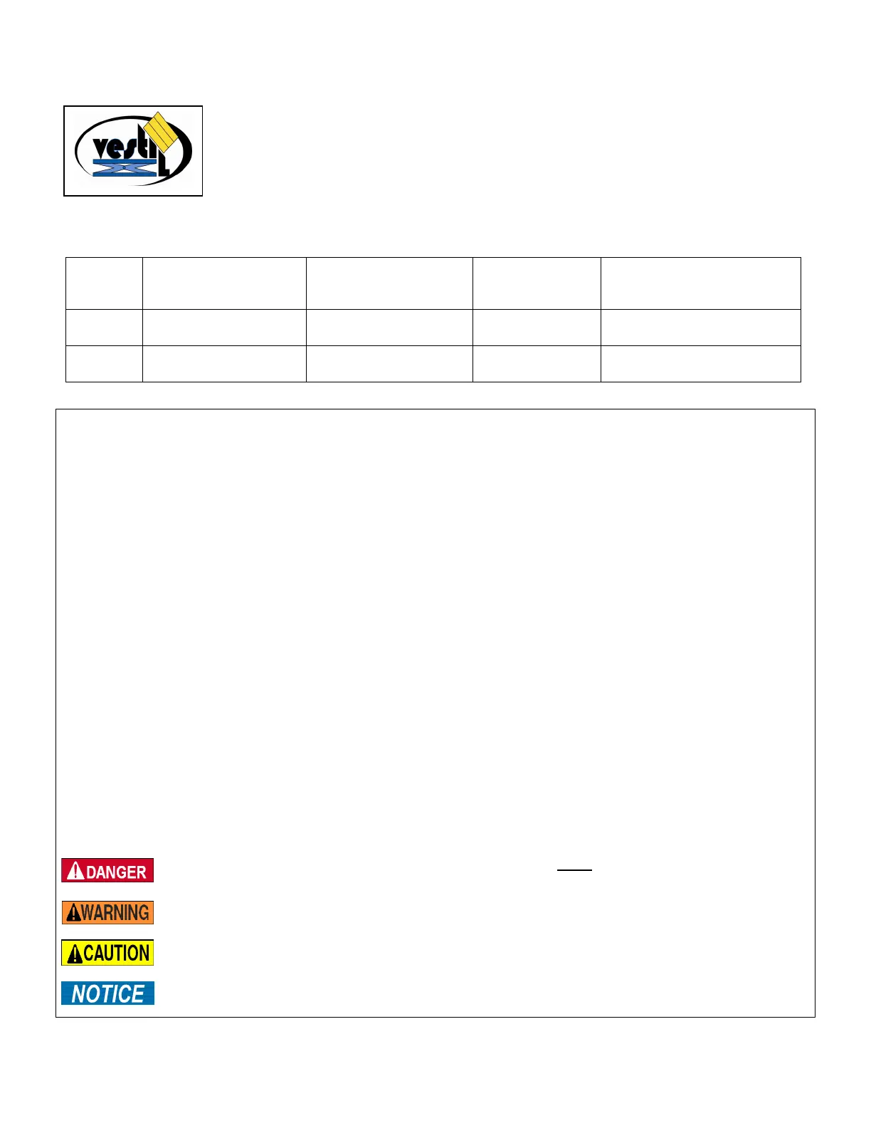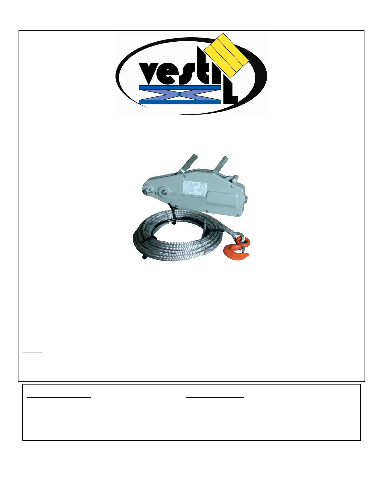 Vestil Manufacturing Corp. created this manual to acquaint persons authorized to use and/or