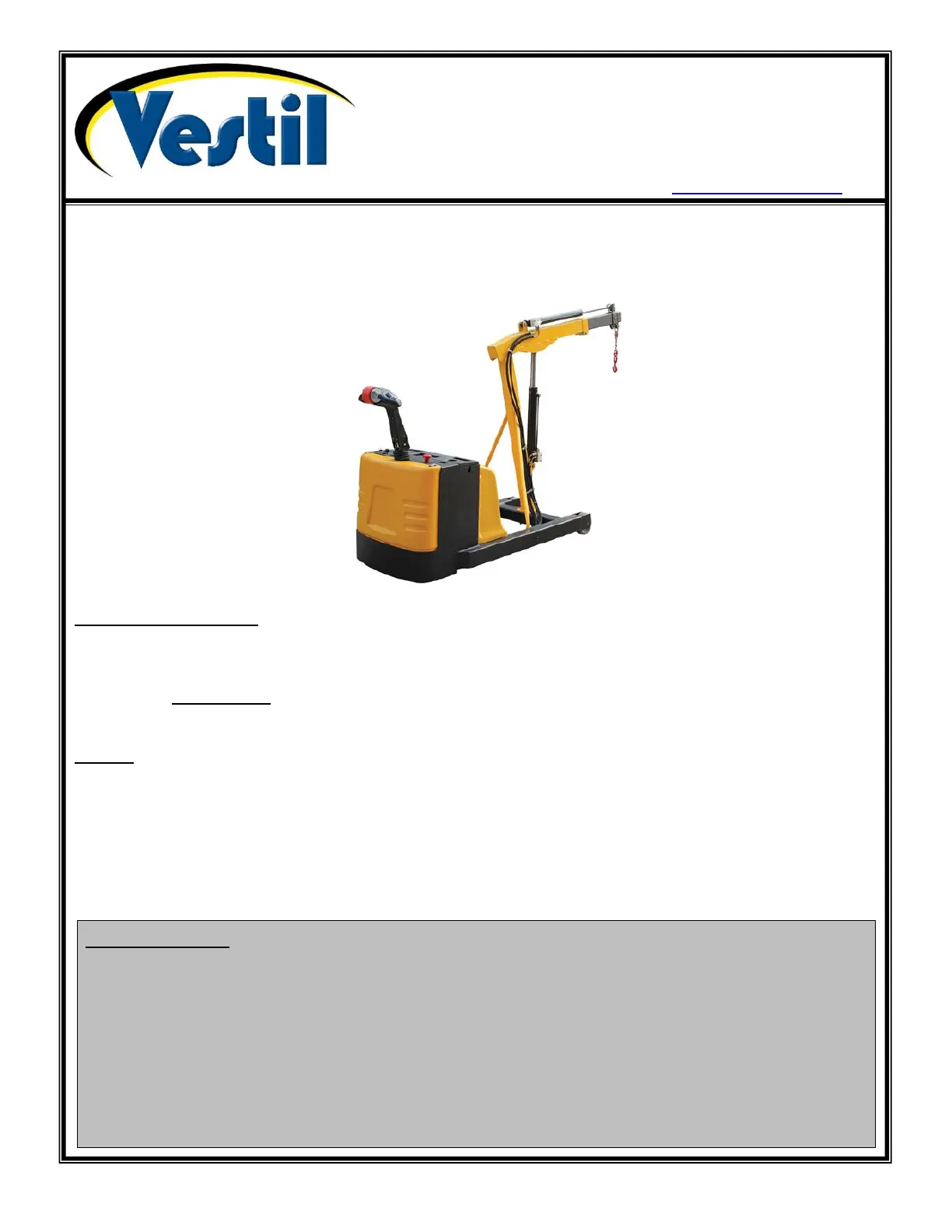 Kran Vestil Manualer