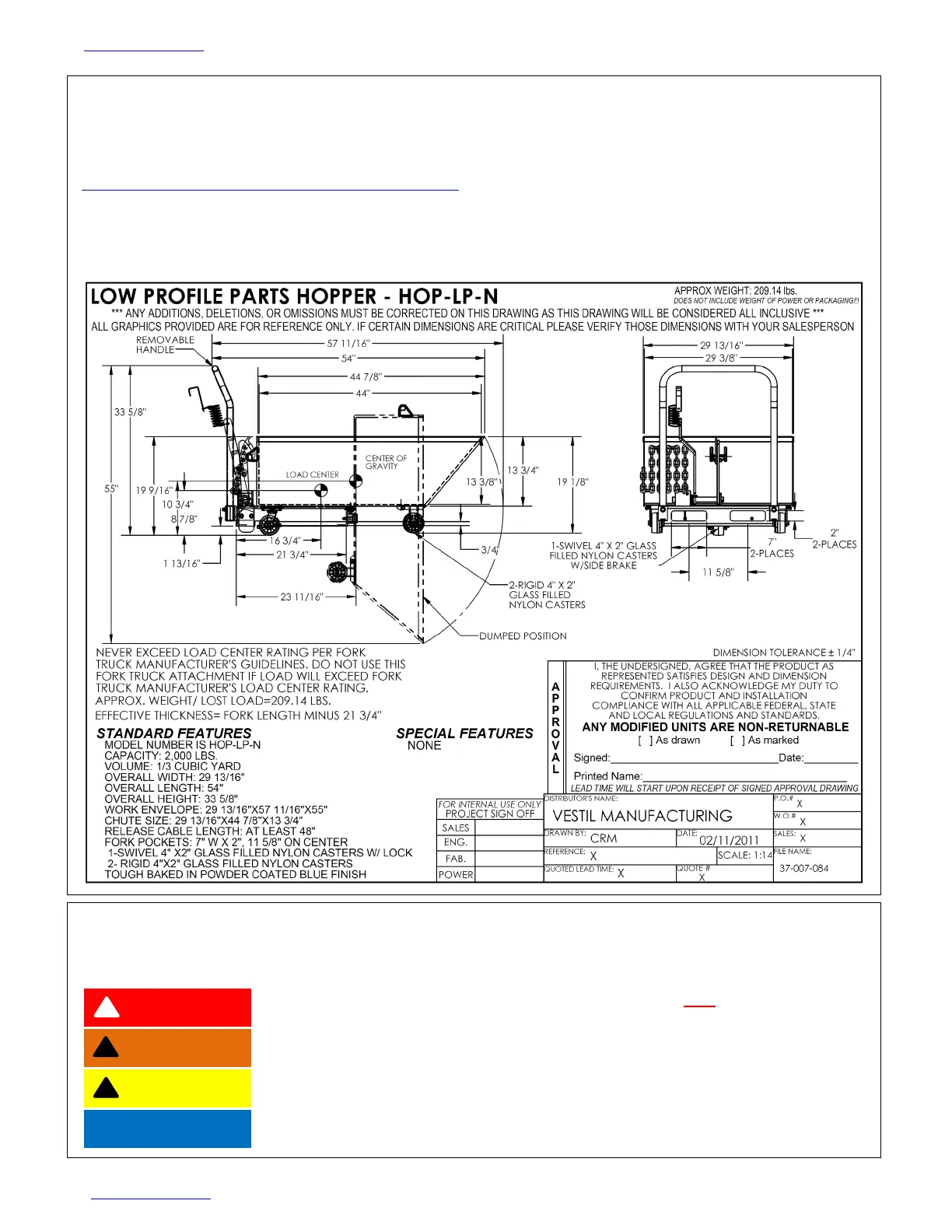 Vestil HOP-LP-N Bruksanvisning