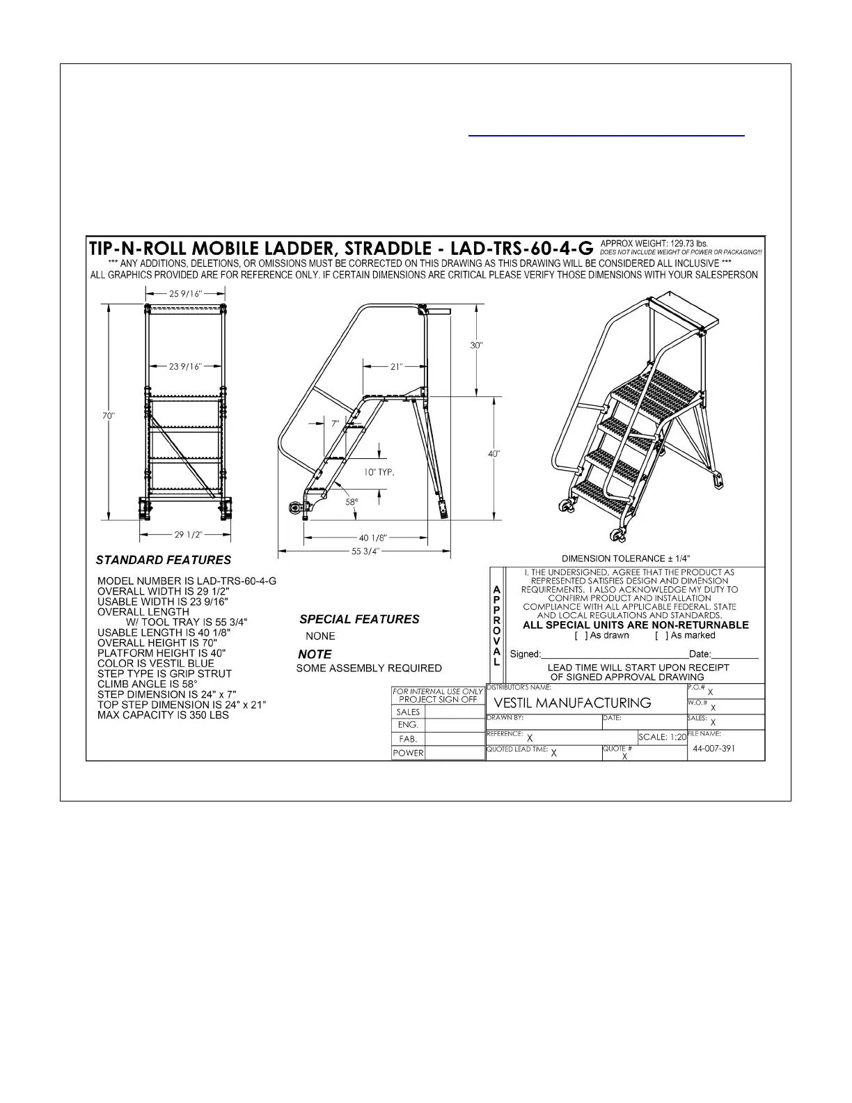 Documents that provide specifications for LAD series mobile ladder stands are available onli