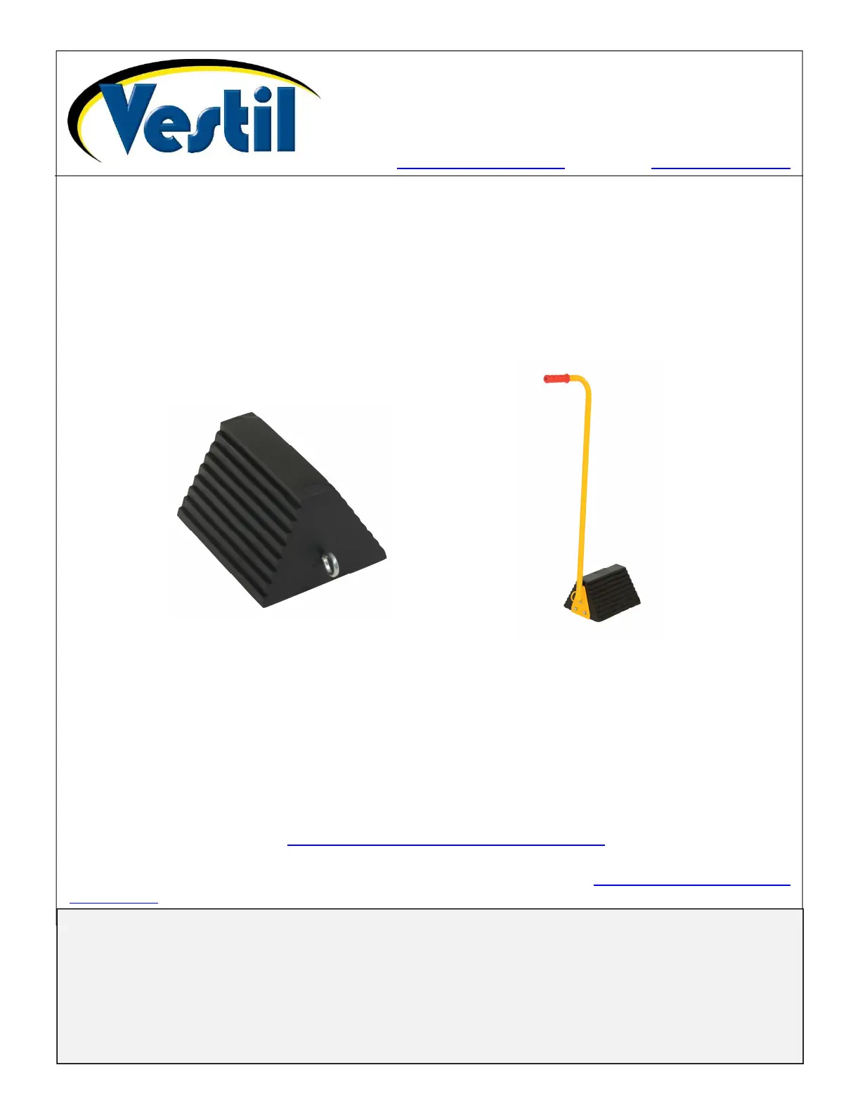 Vestil strives to identify all foreseeable hazards associated with the use of its products. Material