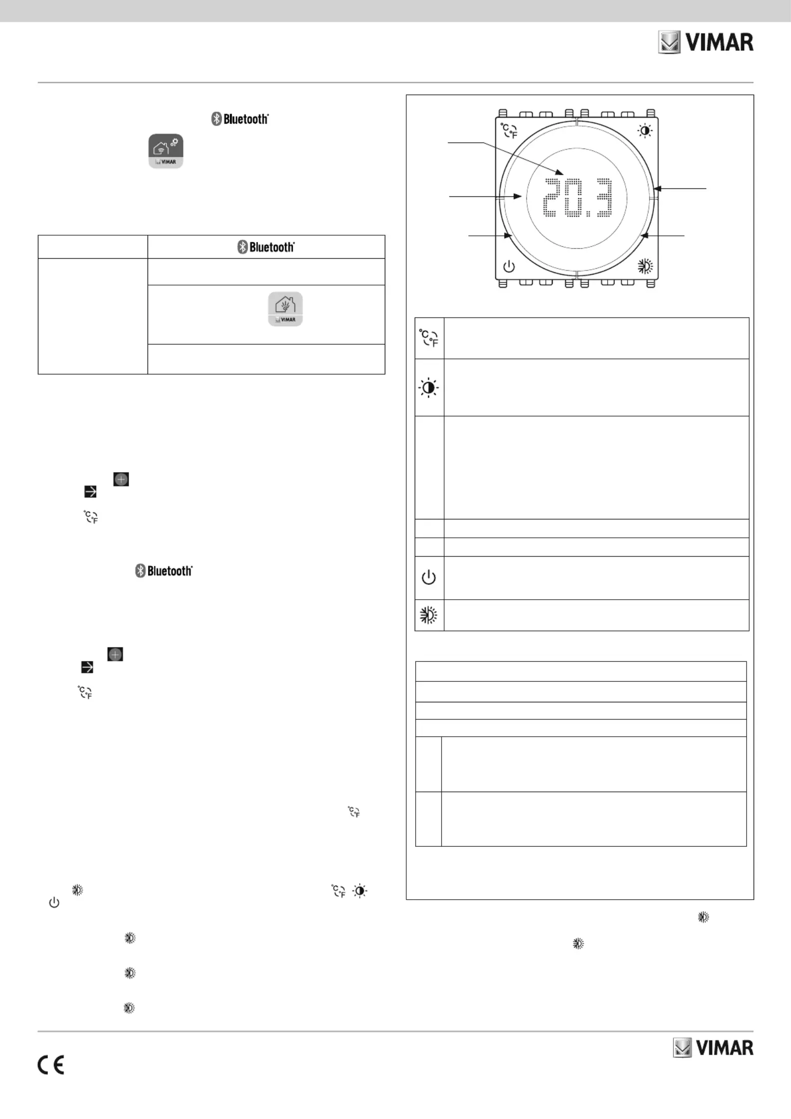 • Long press (5 s) = the thermostat enters the configuration phase (bt)