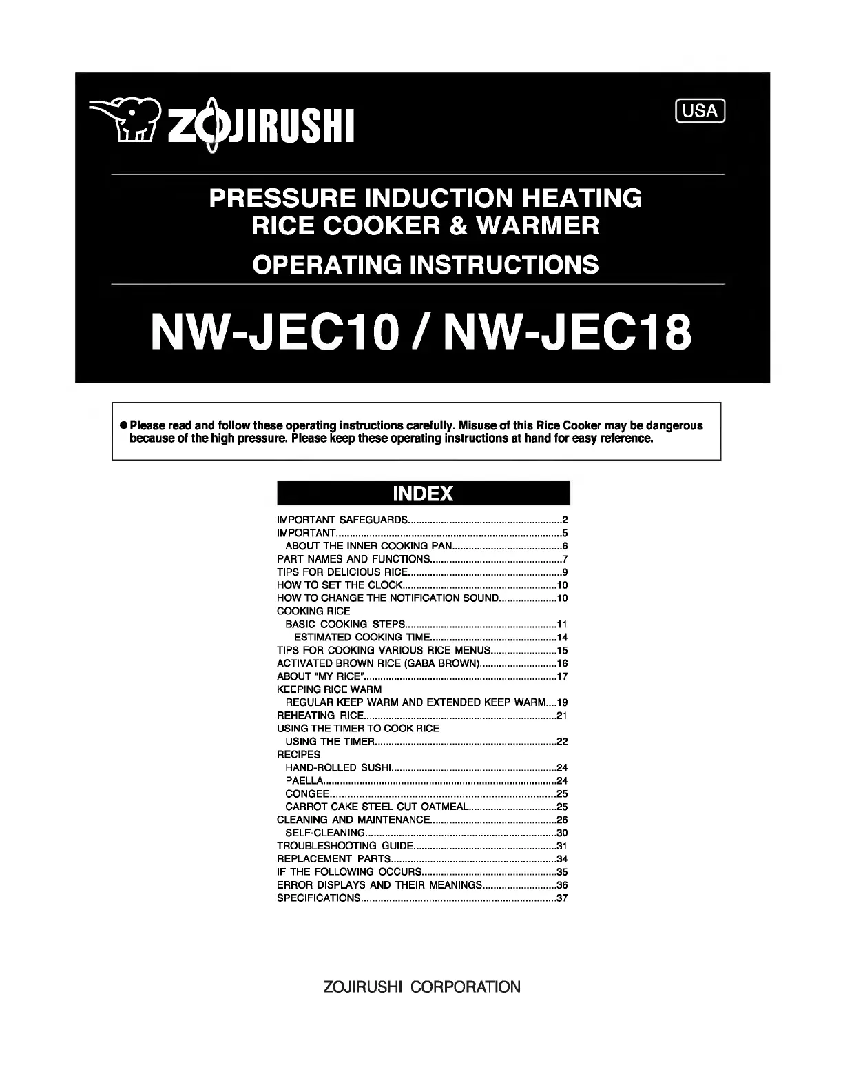 Zojirushi NW-JEC18 Bruksanvisning